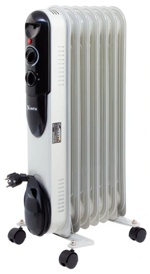 Масляный обогреватель MTX OCH-1500, белый, 1500 Вт, 15 м2, термостат