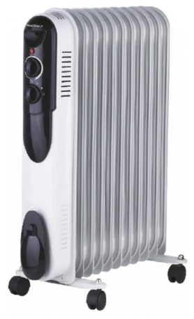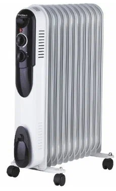 Масляный обогреватель Neoclima NC 9311, белый/черный, 2500 Вт, 25 м2, термостат