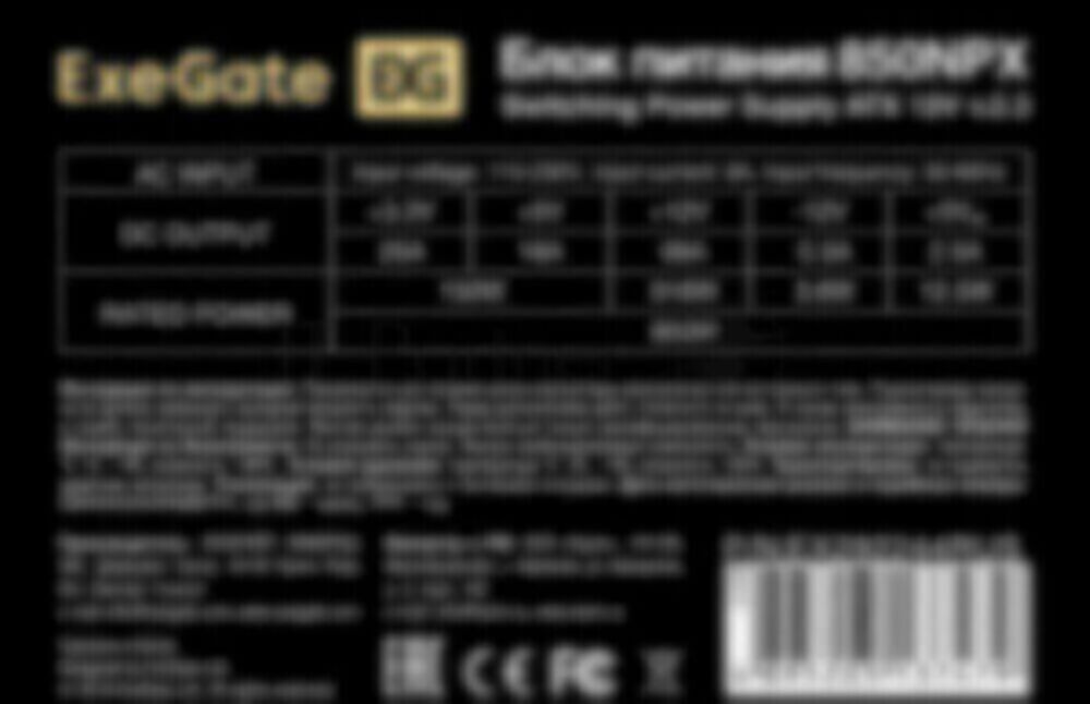 Блок питания ExeGate 850NPX (EX292244RUS-PC), 850W, (ATX, PC, 12cm fan, 24pin, 2x(4+4)pin, 2xPCI-E, 5xSATA, 3xIDE, черный, кабель 220V в комплекте 1,8м)