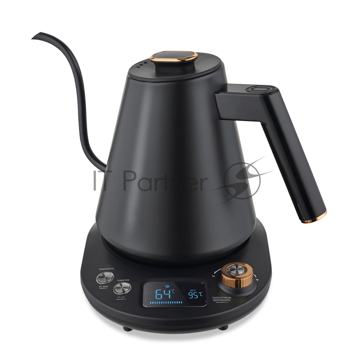 Чайник электрический Kitfort КТ-6696 1л. 1100Вт черный/серебристый корпус: стекло/пластик (KT-6696)