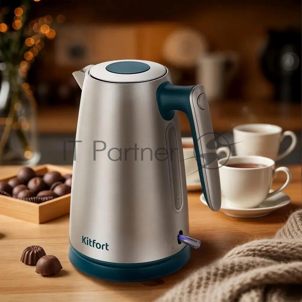 Чайник электрический Kitfort КТ-8725 1.7 л, 2200 Вт, нержавеющая сталь/бирюзовый корпус: нерж.сталь/пластик