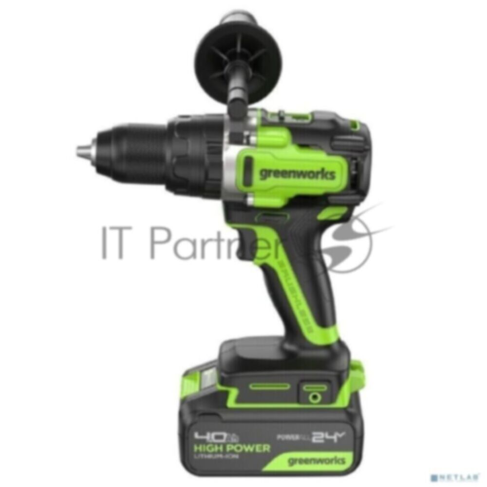 Дрель-шуруповерт аккумуляторная Greenworks GD24DD140 24V, 70/140Нм,Anti-kickback,2х4Ач,ЗУ,кор 3707607CUD