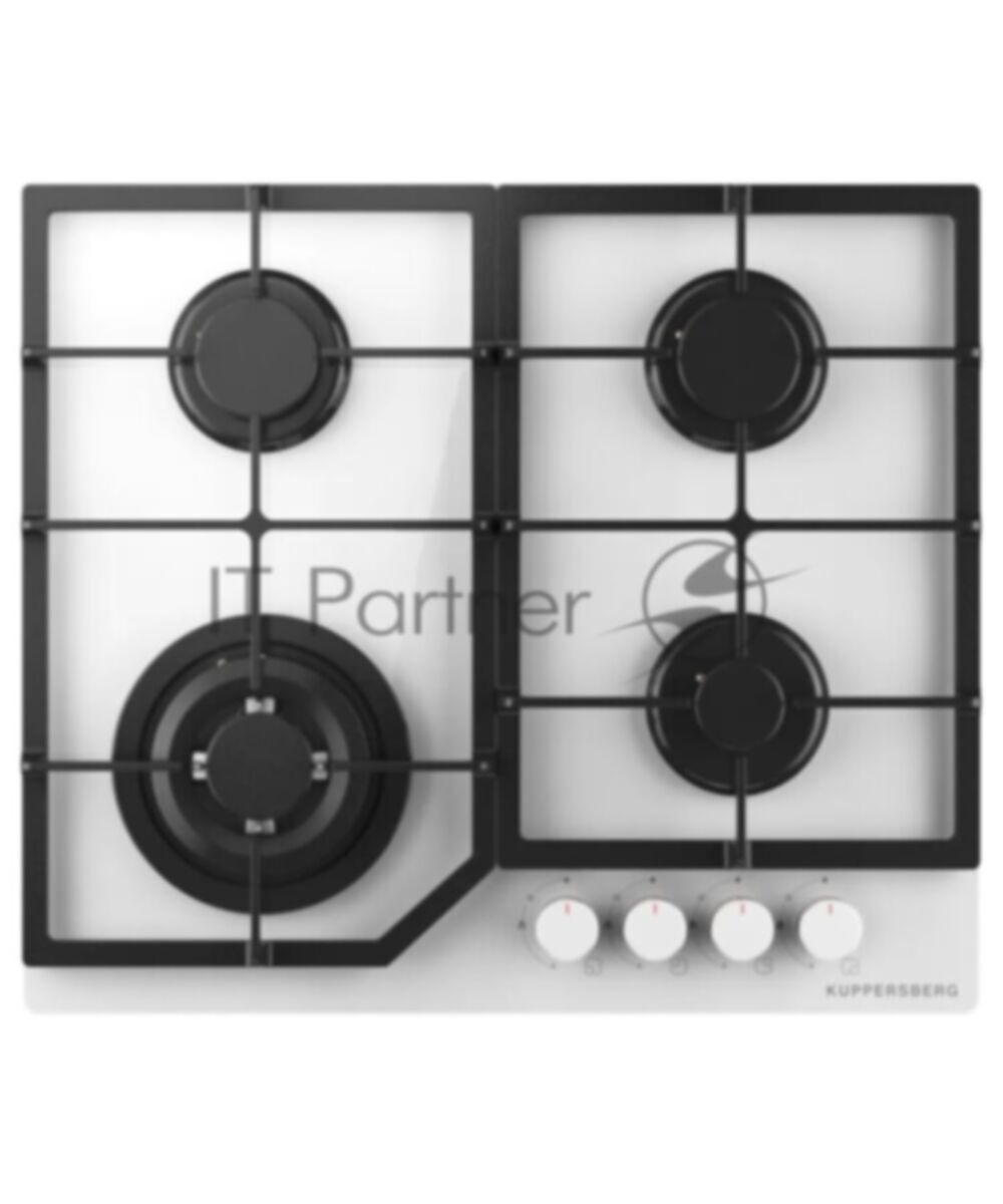 Варочная поверхность Kuppersberg, газ, High-Tech, 60 см, автоматический электроподжиг, газ-контроль, SABAF конфорки, чугунные решетки, WOK конфорка, цвет белое стекло, цвет фурнитуры белый (16 999 ₽) добавлен в корзину