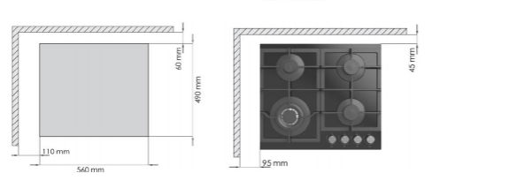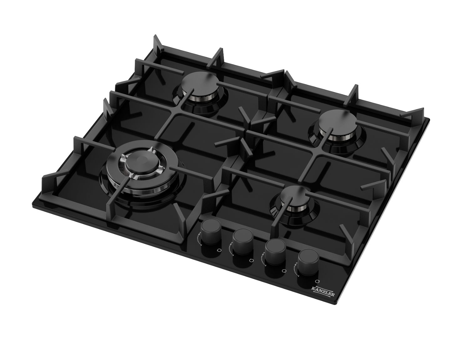 Газовая варочная поверхность, ширина 60см, закалённое стекло, фронтальное управление. Тип конфорок : SABAF (Италия). 4 газовые конфорки, 2 чугунные решетки, электроподжиг, газ-контроль, тепловая мощность конфорок : 7.5 кВт.