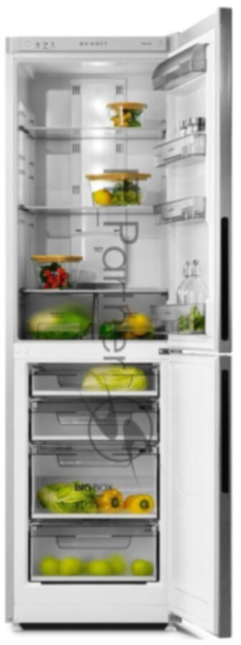 Холодильник BENOIT-344E серебристый металлопласт двухкамерный 220/124л морозилка снизу, No Frost