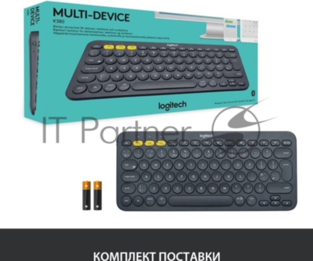 Клавиатура беспроводная Logitech K380 (920-007590) темно-серый (неоригинальная гравировка) (5 399 ₽) добавлен в корзину