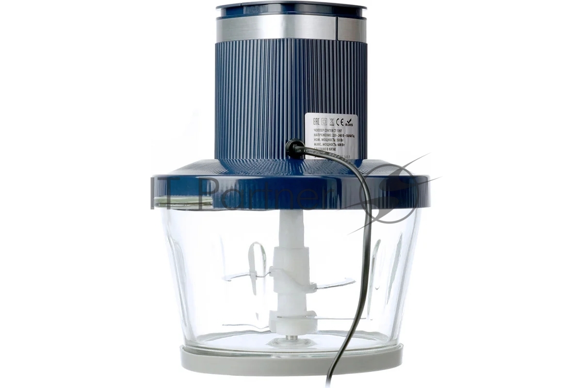 Чоппер Centek CT-1397 (синий) 600Вт 2 скорости, стеклянная чаша 2 л, 4 лезвия, резиновое основание (2 499 ₽) добавлен в корзину