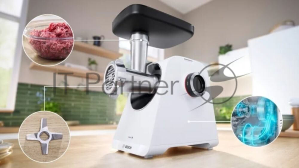 Мясорубка электрическая Bosch MFWS607W белый, 2100 Вт, 3.5 кг/мин, реверс, насадки - 4