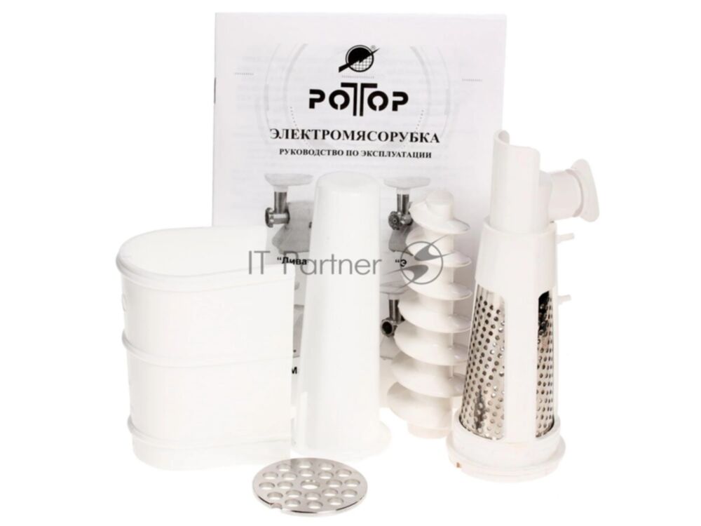 Мясорубка электрическая Ротор Люкс ЭМШ 35/300-2 белый, 1500 Вт, 0.6 кг/мин, реверс, насадки - 2