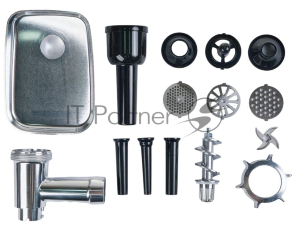 Мясорубка электрическая OASIS MG-DM1 серый, 2500 Вт, 1.5 кг/мин, реверс, защита от перегрузки, металлический лоток, насадки - 8