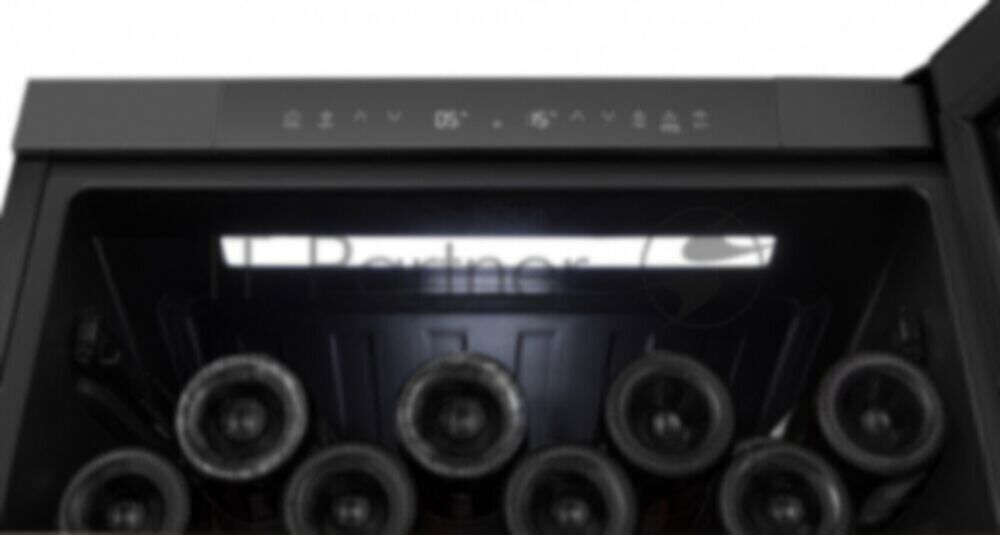 Встраиваемы е винный шкаф Gorenje WCU68F6BG4WF, объем 138 л, вместительность 46 бутылок, 4 полки, цифровой дисплей, Wi-Fi, LED освещение, защита от УФ-излучения, энергоэффективность А+, цвет черный