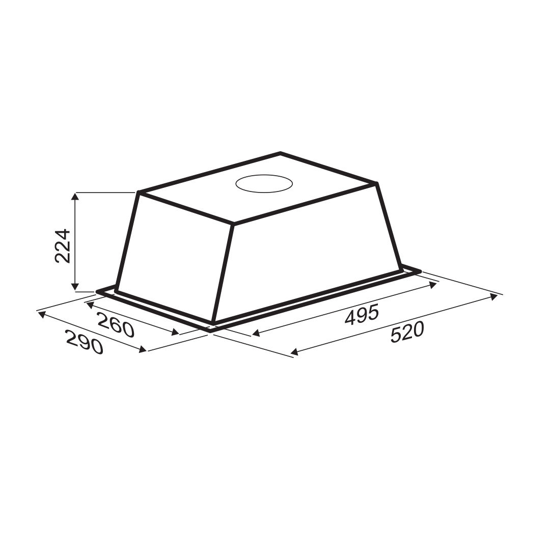 Полновстраиваемая вытяжка, 3 скорости работы, механическое управление кнопками, производительность: 1010 м3/час, режимы: отвод/рециркуляция, уровень шума: 55-72 дБ, освещение: диодное, 2х2,5 Вт, диаметр воздуховода – 150 мм, размеры изделия (ШхГхВ): 520х290х224мм.<br /> ГАРАНТИЯ 3+2 ГОДА.<br /> Производитель на свое усмотрение и без дополнительных уведомлений может менять комплектацию, внешний вид, страну производства и технические характеристики модели.